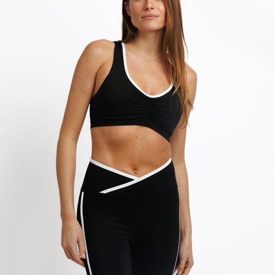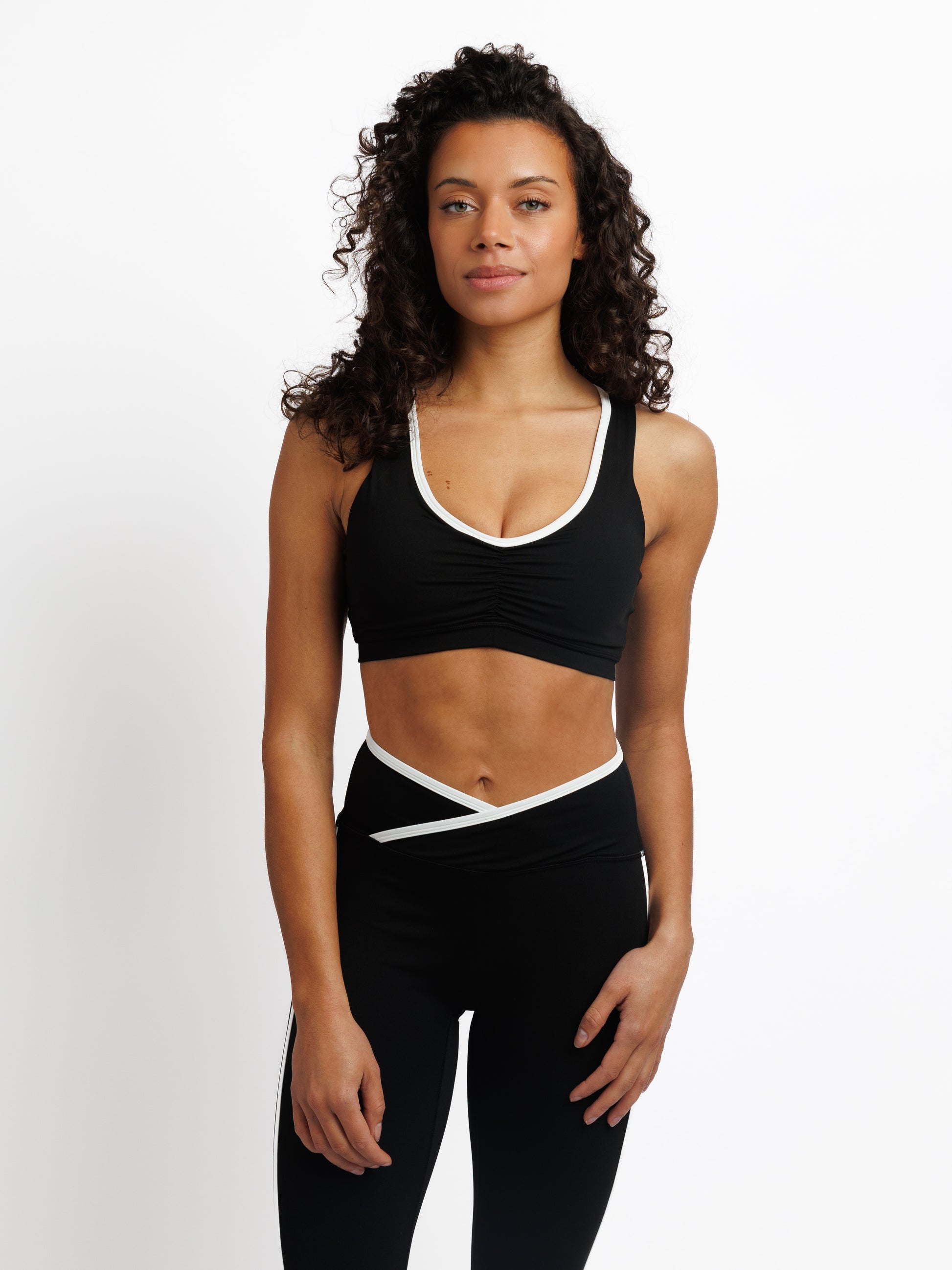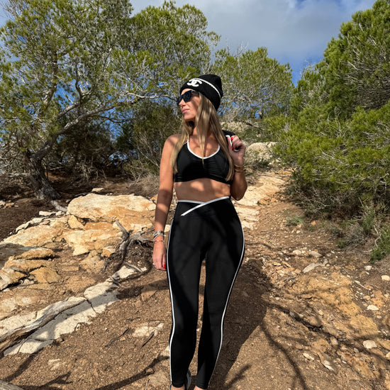 The AZUR Sport Bra combines a sculpted, feminine fit. Designed in sleek black with white detailing, it delivers a sharp, modern aesthetic that stands out in and out of the gym. The highlight? A sexy, open-back design that shapes beautifully, offering both breathability and a confident, eye-catching look.