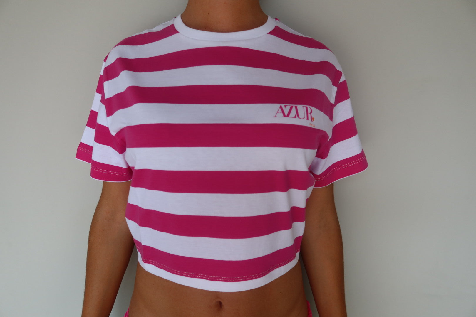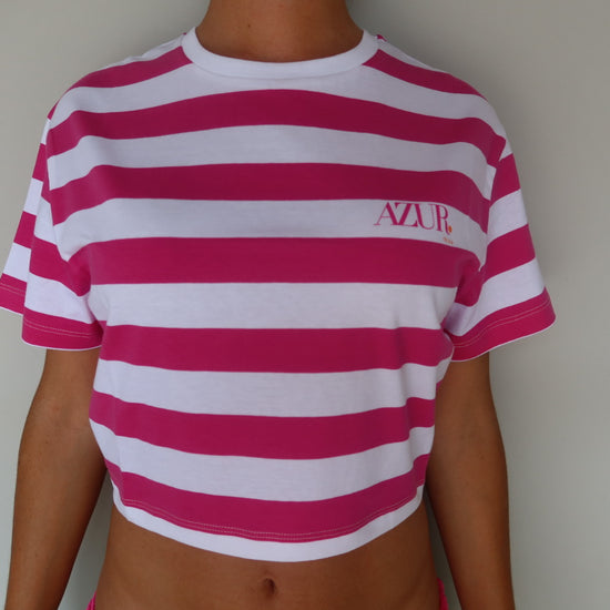 Our iconic striped cropped T-Shirt is a must-have to your summer wardrobe. Crafted with care, this trendy and vibrant t-shirt features a striped pattern that instantly elevates your look. The cropped design is perfect for those warm, sunny days by the beach or poolside.