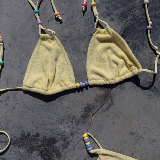 A dreamy twist on a classic.The Luna Bikini features a timeless triangle top with delicate, colorful beads — inspired by our iconic Escollera design. Made for sun-drenched days and golden hour dips.